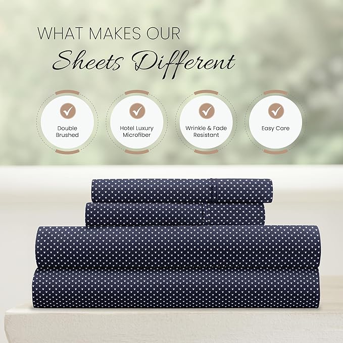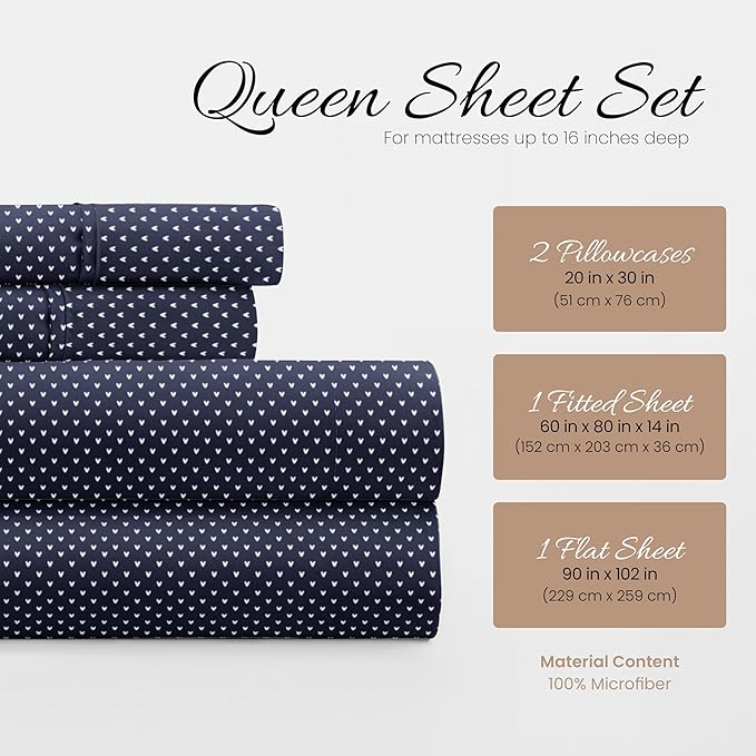 Linen Market 4 Piece Queen Bedding Sheet Set (Navy Blue Heart) - Sleep Better Than Ever with These Ultra-Soft & Cooling Bed Sheets for Your Queen Size Bed - Deep Pocket Fits 16" Mattress