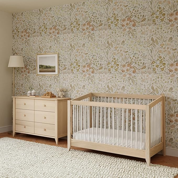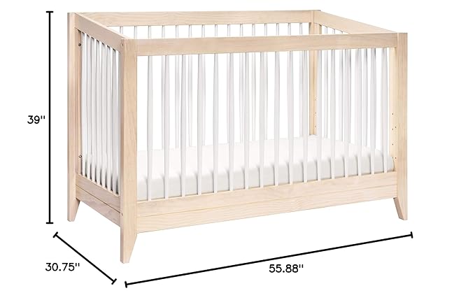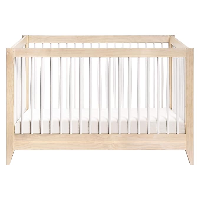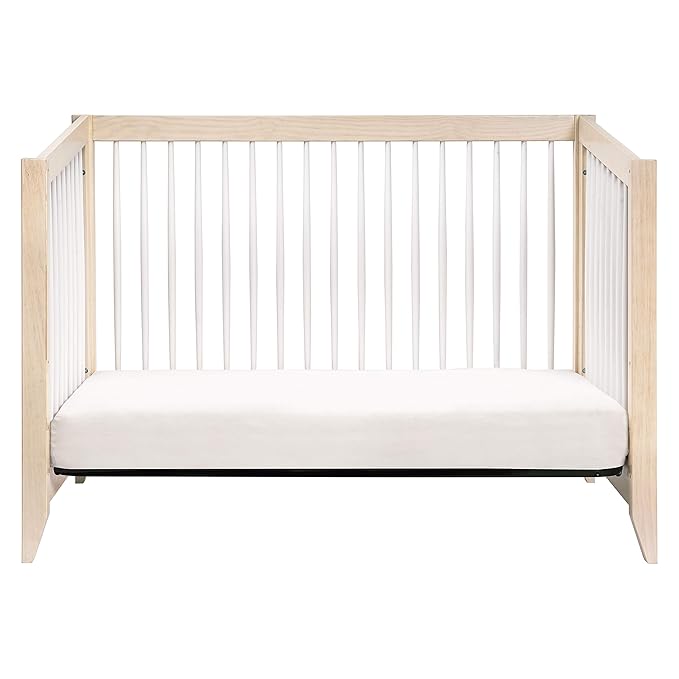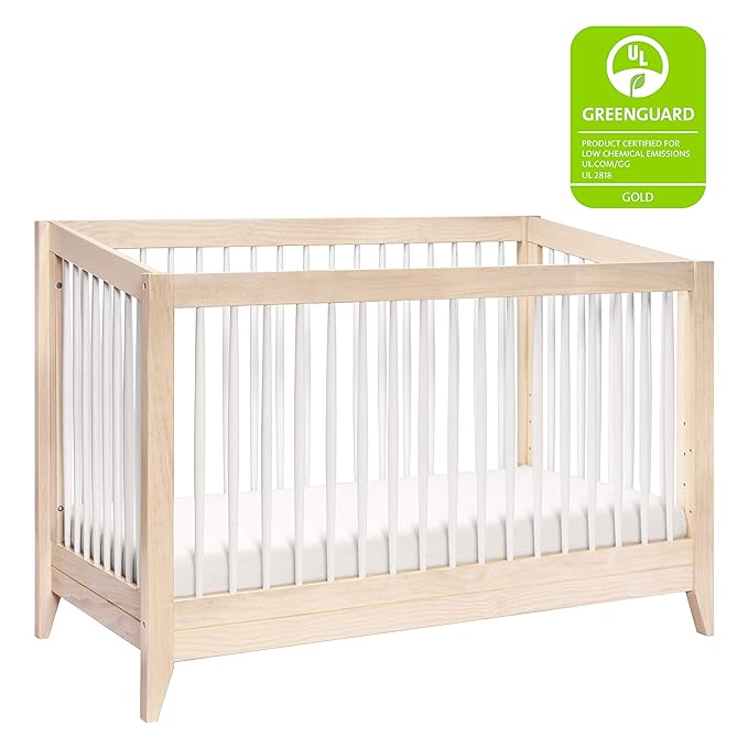 Babyletto Sprout 4-in-1 Convertible Crib with Toddler Bed Conversion Kit in Washed Natural and White, Greenguard Gold Certified