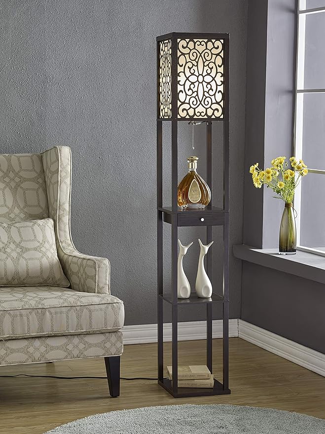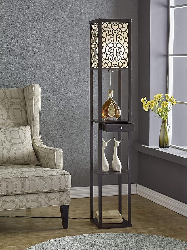 Artiva USA A808101EX Etagere Shelf Floor lamp with Drawer, 63", Expresso