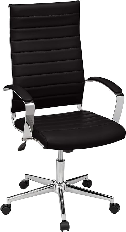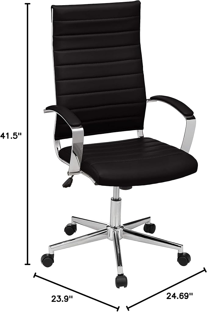 Amazon Basics Executive Modern Office Computer Desk Task Chair with Armrests, High-Back, Adjustable, Lumbar Support, 360 Swivel Rolling,330 Lb Capacity, 23.9"D x 24.69"W x 41.5"H, Black Faux Leather