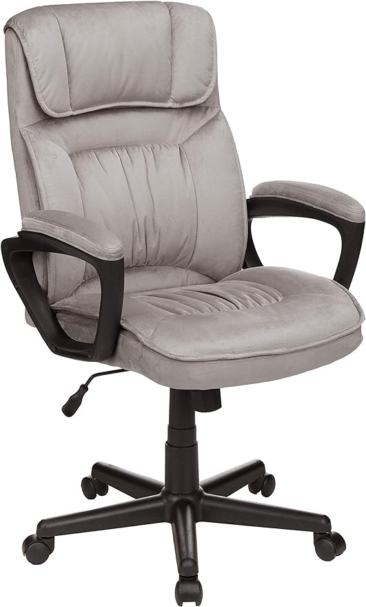 Amazon Basics Classic Office Desk Computer Chair - Adjustable, Swiveling, Ultra-Soft Microfiber, Lumbar Support, 28"D x 25"W x 43.5"H, Light Gray