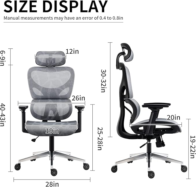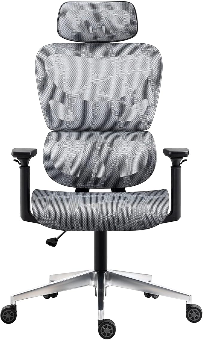 Nouhaus Ergo3D Ergonomic Office Chair Lumbar Support Mesh Office Chair with 4D Adjustable Armrest, Adjustable Headrest and Wheels, Mesh High Back Home Office Desk Chairs (Grey)