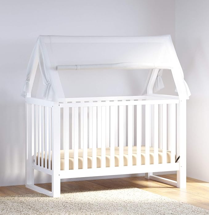 Storkcraft Orchard 5-in-1 Convertible Crib (White) – GREENGUARD Gold Certified, Canopy Style Baby Crib, Converts from Crib to Toddler Bed, Daybed and Full-Size Bed, Fits Standard Crib Mattress
