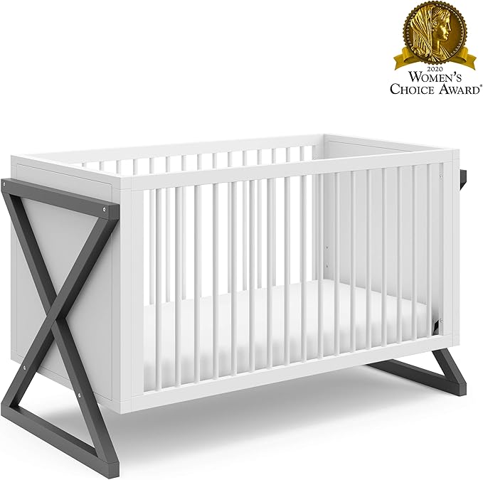 Storkcraft Equinox 3-in-1 Convertible Crib (Gray) – Easily Converts to Toddler Bed and Daybed, 3-Position Adjustable Mattress Support Base, Modern Two-Tone Design for Contemporary Nursery