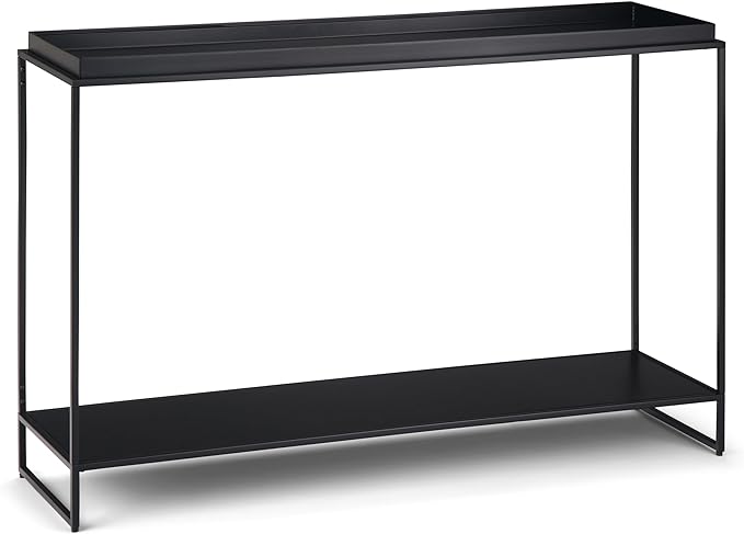 SIMPLIHOME Garner 47 inch Wide Metal Tray Top Console Sofa Entryway Table in Black, for the Living Room, Entryway and Bedroom