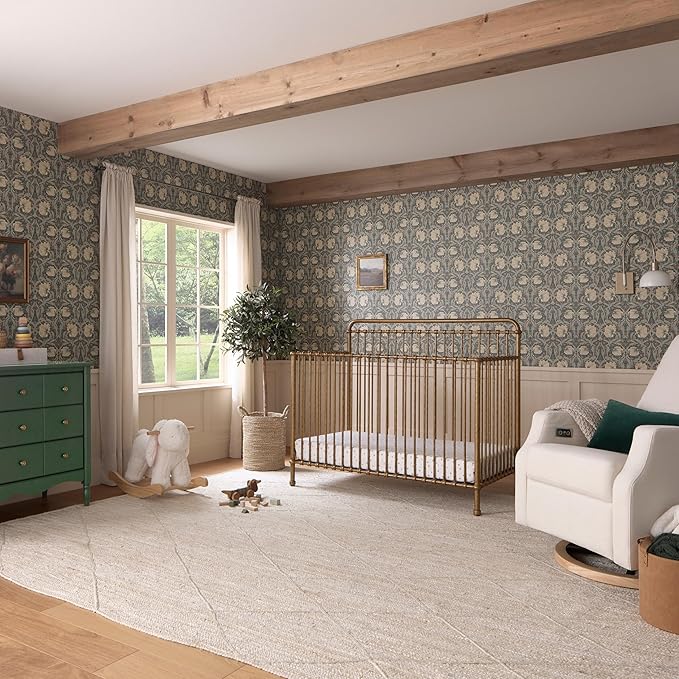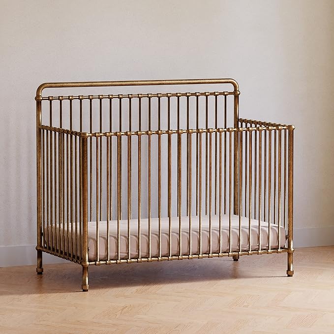 NAMESAKE Winston 4-in-1 Convertible Metal Crib in Vintage Gold, Greenguard Gold Certified