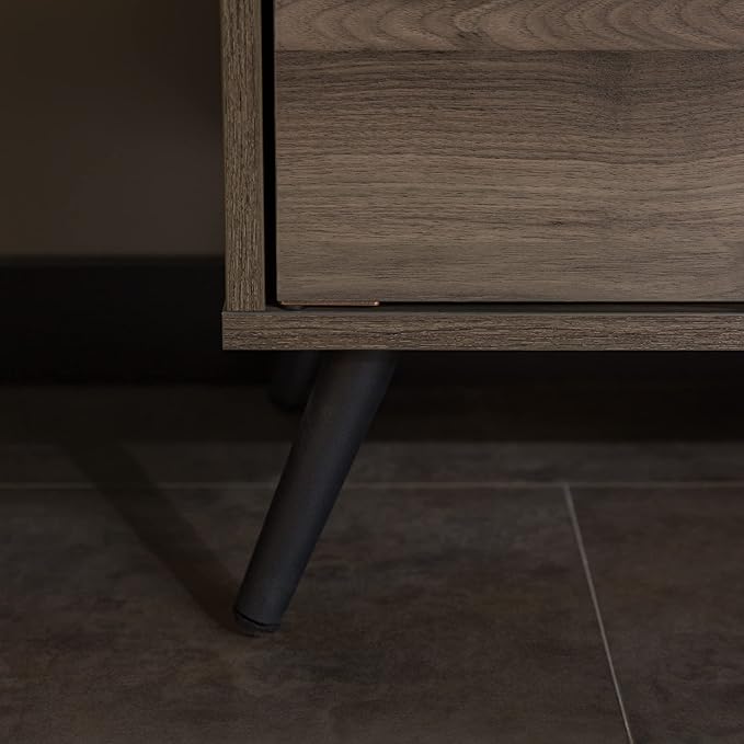 Walker Edison Saxon Mid Century Modern Glass Shelf TV Stand for TVs up to 65 Inches, 60 Inch, Slate Grey