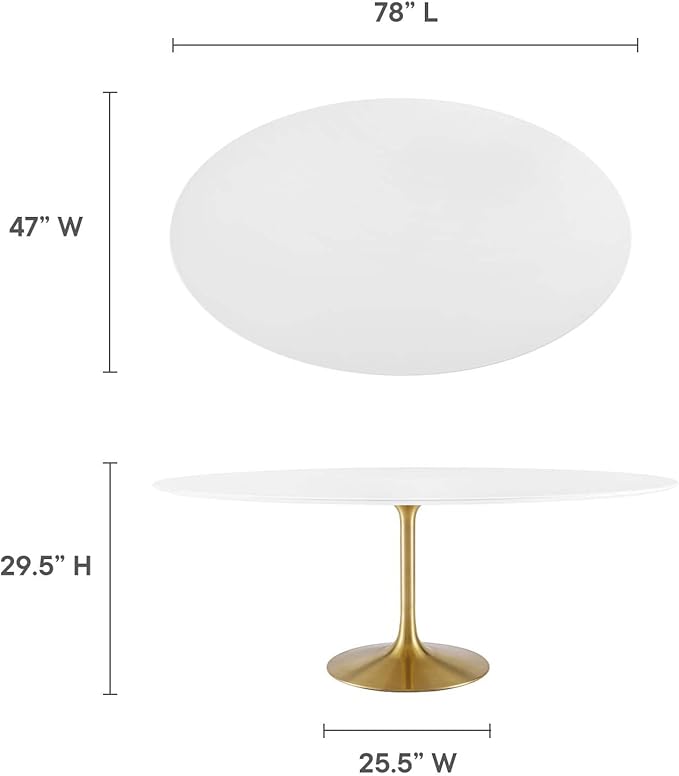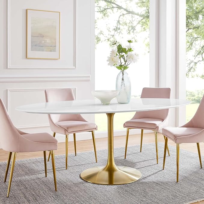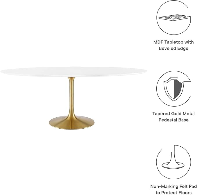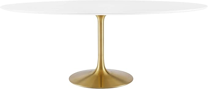 Modway Lippa 78" Oval-Shaped Mid-Century Modern Dining Table with White Wood Top and Gold Base