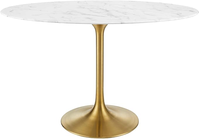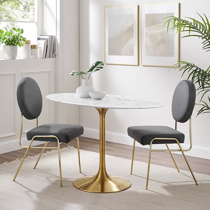 Modway Lippa 48" Oval-Shaped Mid-Century Modern Dining Table with Artificial Marble Top and Gold Base