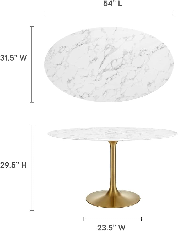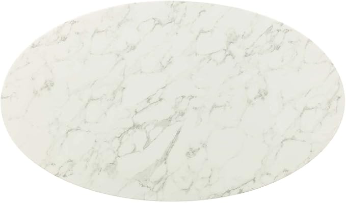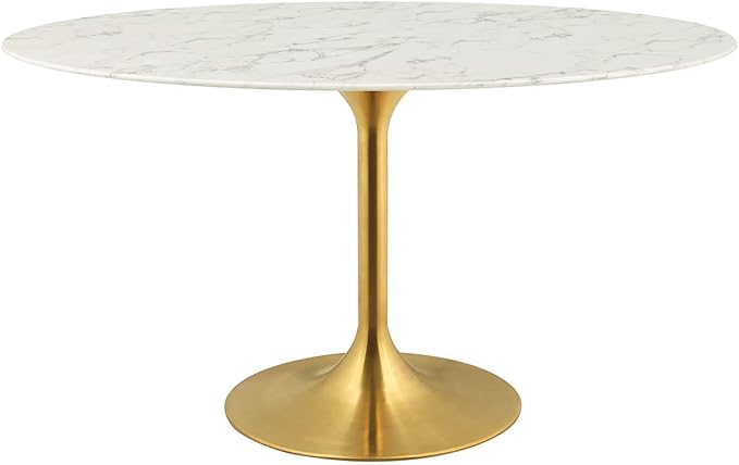 Modway Lippa 54" Oval-Shaped Mid-Century Modern Dining Table with Artificial Marble Top and Gold Base