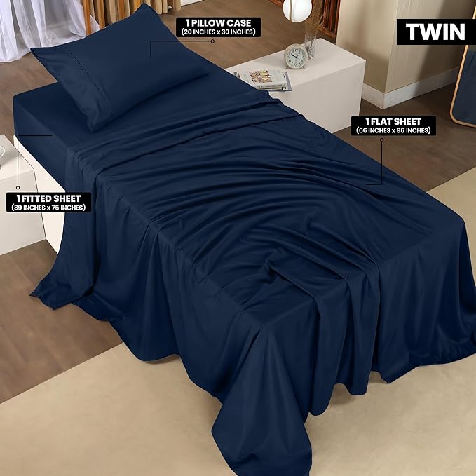 Utopia Bedding Twin XL Sheets - 3 Piece Bedding - Brushed Microfiber - Shrinkage and Fade Resistant - Easy Care (Twin XL Twin Extra Long Navy)