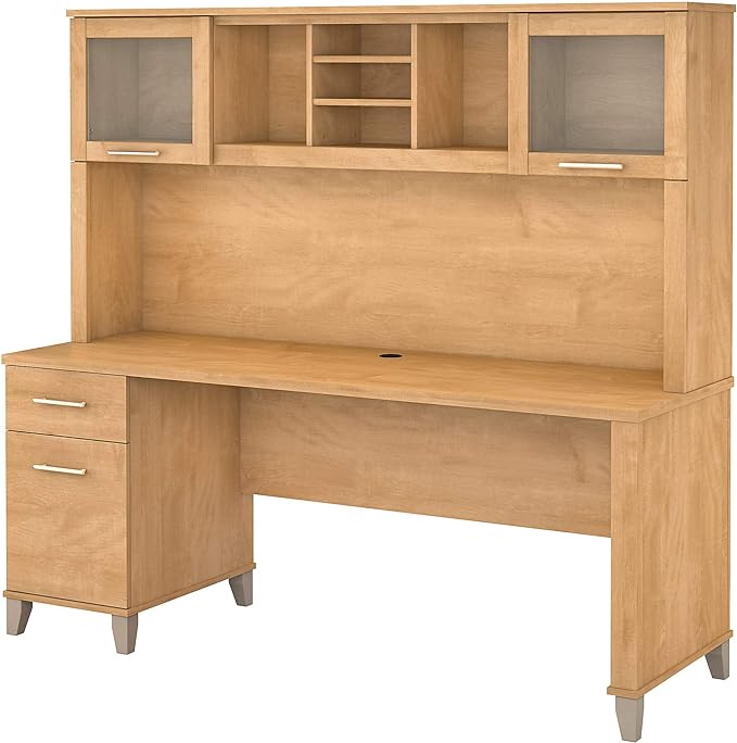 Bush Furniture Somerset 3 Position Sit to Stand L Shaped Desk, 72W, Maple Cross