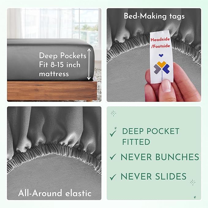 California Design Den Luxury Twin XL Sheet Set - 100% Cotton, 600 Thread Count Deep Pocket XL Twin Sheets, Hotel-Quality Bedding with Soft Sateen Weave - Grey