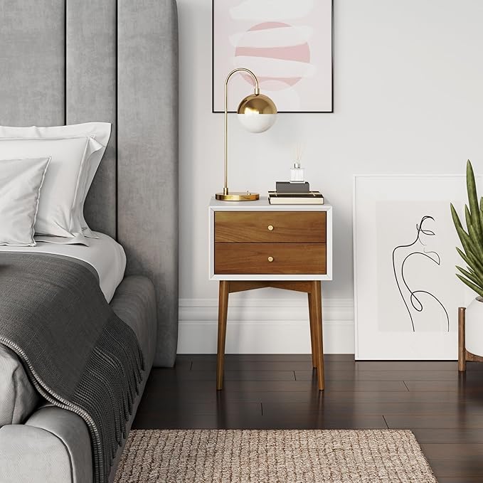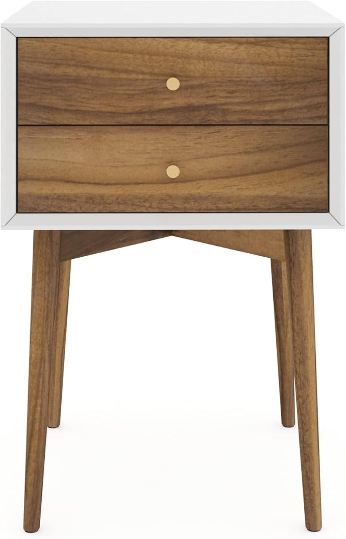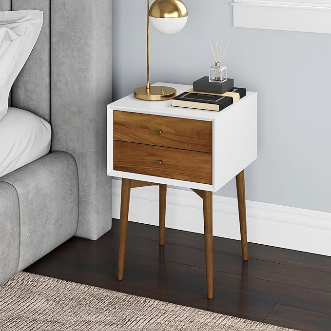 Nathan James Harper Modern Nightstand Side Accent or End Table with Storage Drawer, 1, White/Brown
