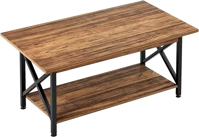 GreenForest Coffee Table Large 43.3 x 23.6 inch Farmhouse Rustic with Storage Shelf for Living Room, Easy Assembly, Walnut