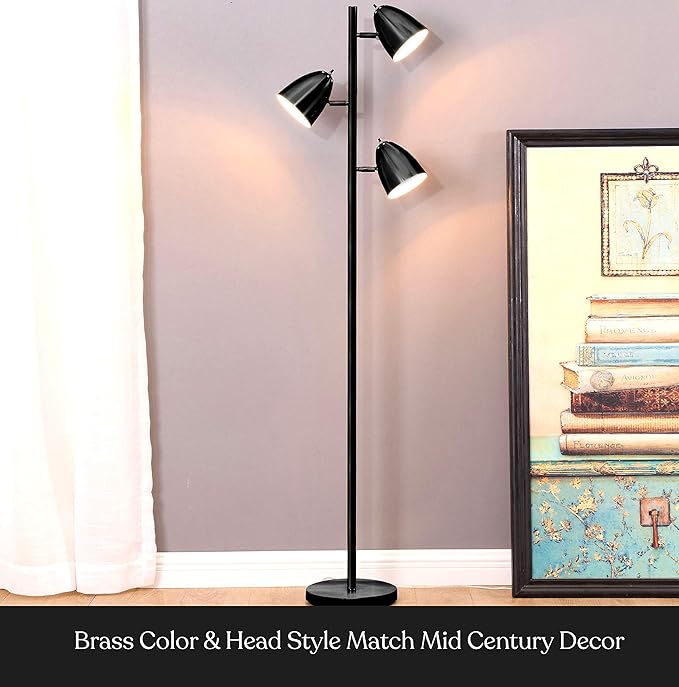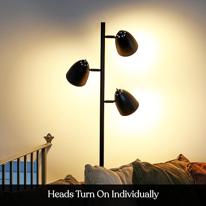 Brightech Jacob LED Standing Lamp, Modern Bright Floor Lamps for Living Rooms & Bedrooms, Tall LED Lighting Lamp with Adjustable 3 Light Tree – Classic Black