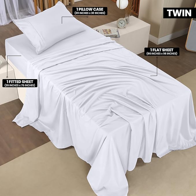 Utopia Bedding Twin XL Sheets - 3 Piece Bedding - Brushed Microfiber - Shrinkage and Fade Resistant - Easy Care (Twin XL Twin Extra Long White)
