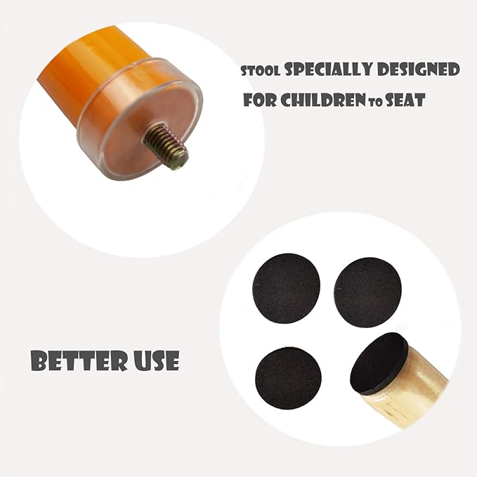 9 Inch Kids Solid Hard Wood Fruit Chair, Crafted Hand-Painted Wood with Assembled Four-Legged Sitting Stool, Bedroom, Playroom, Orange Furniture Stool for Toddler, Children, Boys, Girls(Orange)