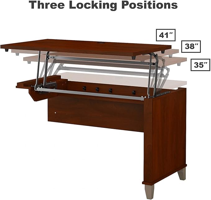 Bush Furniture Somerset 72W 3 Position Sit to Stand L Shaped Desk with Hutch in Mocha Cherry