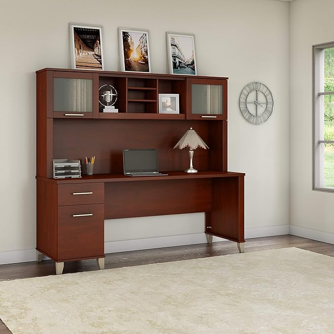 Bush Furniture Somerset 72W Office Desk with Drawers and Hutch in Hansen Cherry