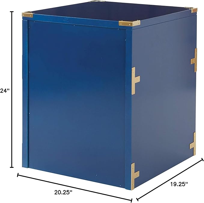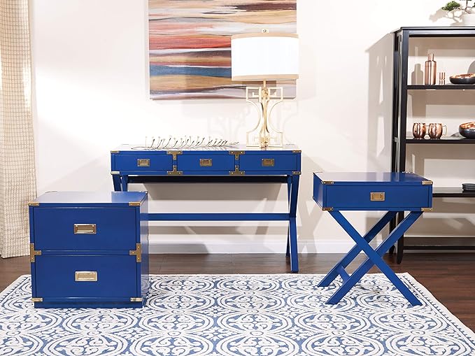 About This Classic campaign style crafted from solid and manufactured wood with metal hardware accents and a lapis blue finish...