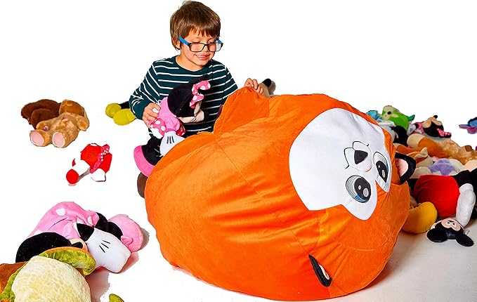 Extra Large Animal Bean Bag Chair Cover and Soft Toy and Linen Storage Organizer for Room Decor (Fox)