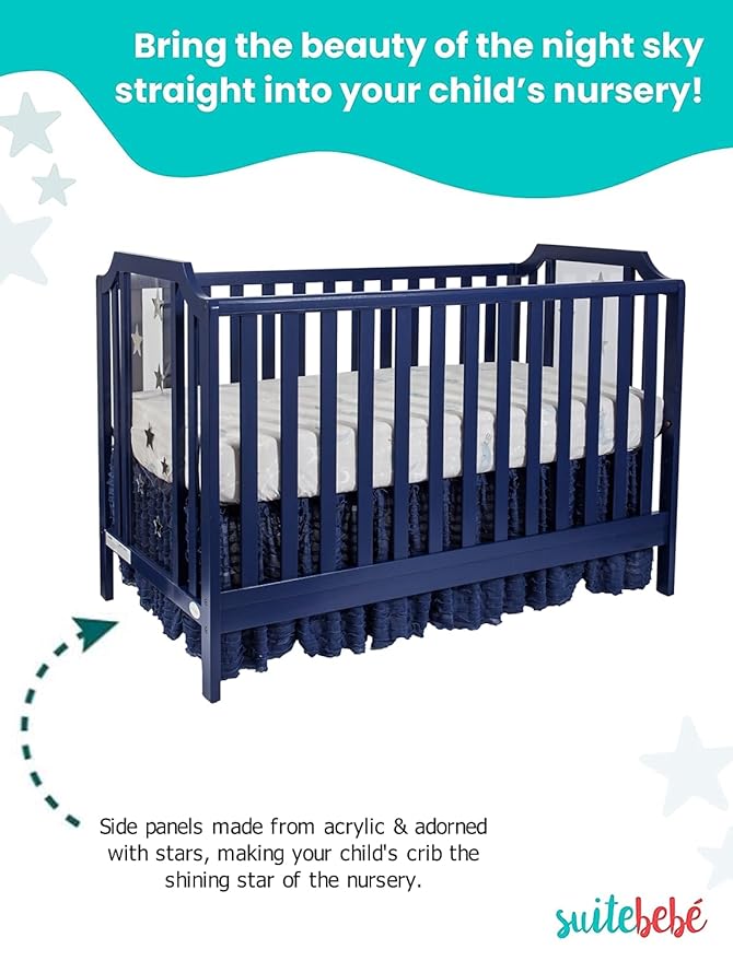 Suite Bebe Celeste 3 in 1 Convertible Island Crib Wood and Acrylic, Navy Blue