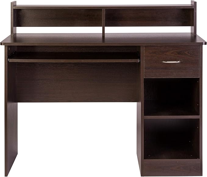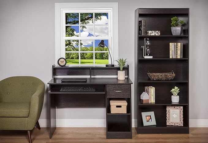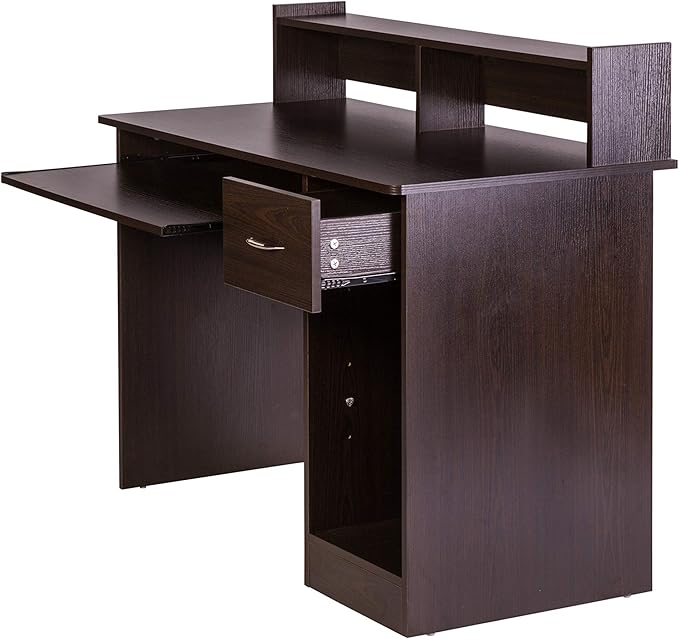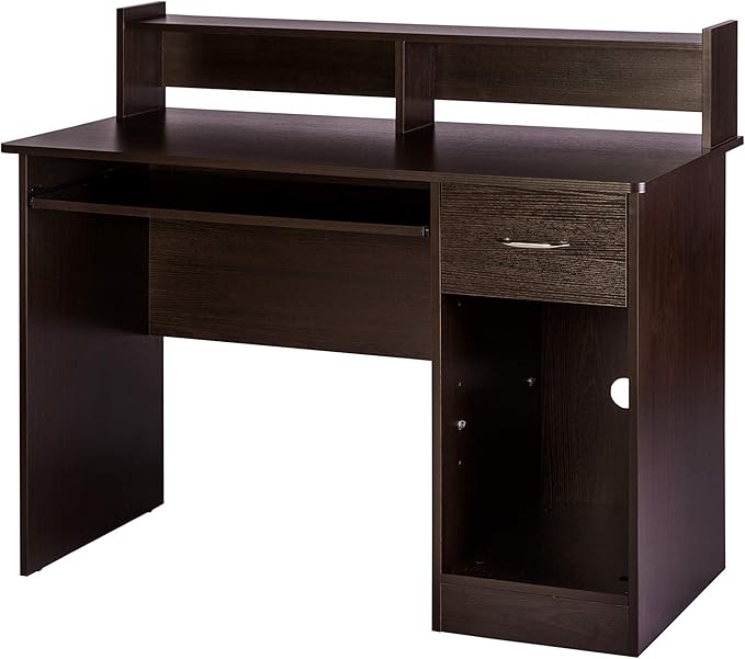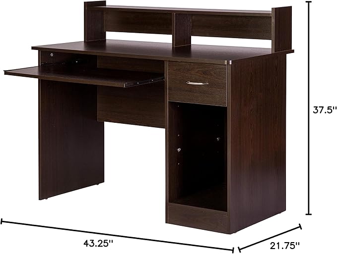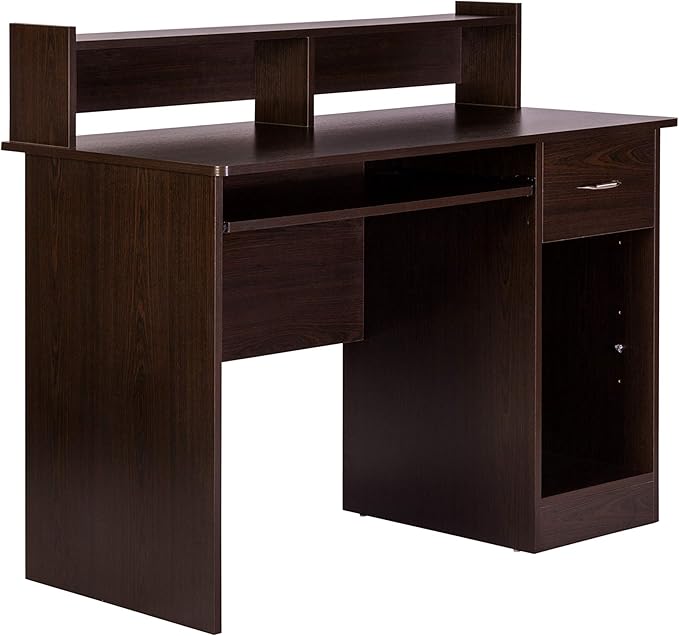 OneSpace Essential Computer Desk, Hutch with Pull-Out Keyboard, Espresso