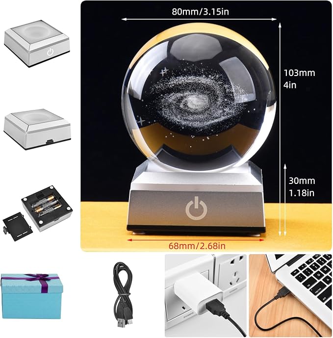 About This ★【Material & Feature】:This galaxy crystal ball models is made of premium K9 crystal material. Use advanced 3D Inner...