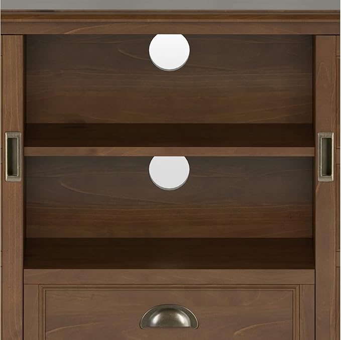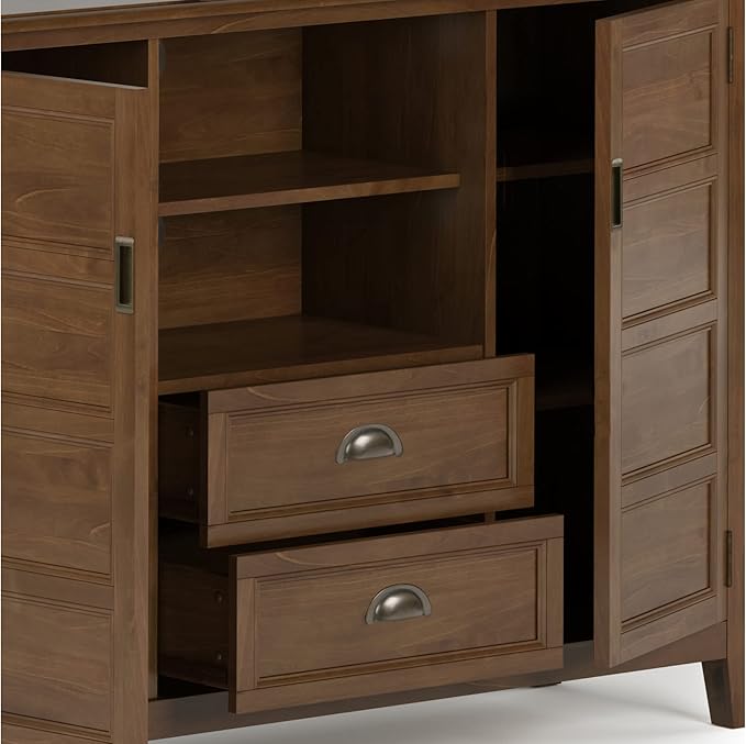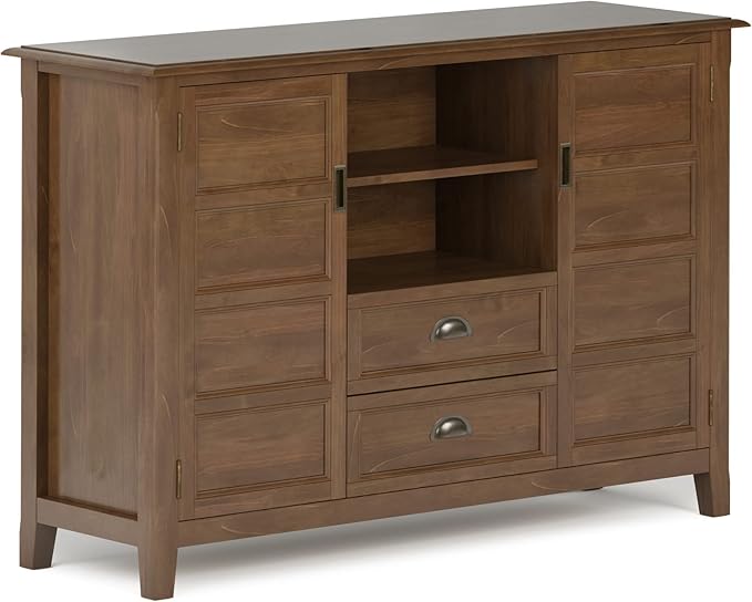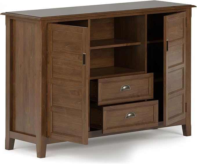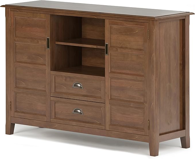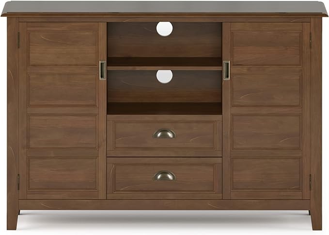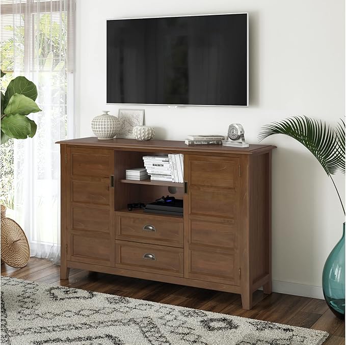 SIMPLIHOME Burlington SOLID WOOD Universal TV Media Stand, 54 inch Wide, Transitional, Living Room Entertainment Center, Storage Shelves and Cabinets, for TVs up to 60 inches in Medium Saddle Brown
