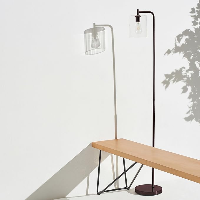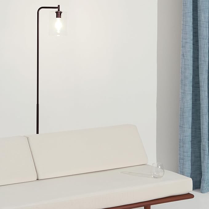 Brightech Elizabeth LED Floor lamp, Tall Lamp with Glass Shade & Edison Bulb, Industrial Lamp for Living Rooms & Offices, Vintage Standing Lamp for Bedroom in Farmhouse or Rustic Style - Bronze