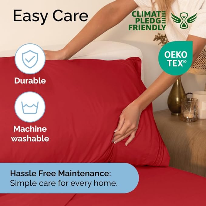 King Size 4 Piece Sheet Set - Comfy Breathable & Cooling Sheets - Hotel Luxury Bed Sheets for Women & Men - Deep Pockets, Easy-Fit, Extra Soft & Wrinkle Free Sheets - Red Oeko-Tex Bed Sheet Set