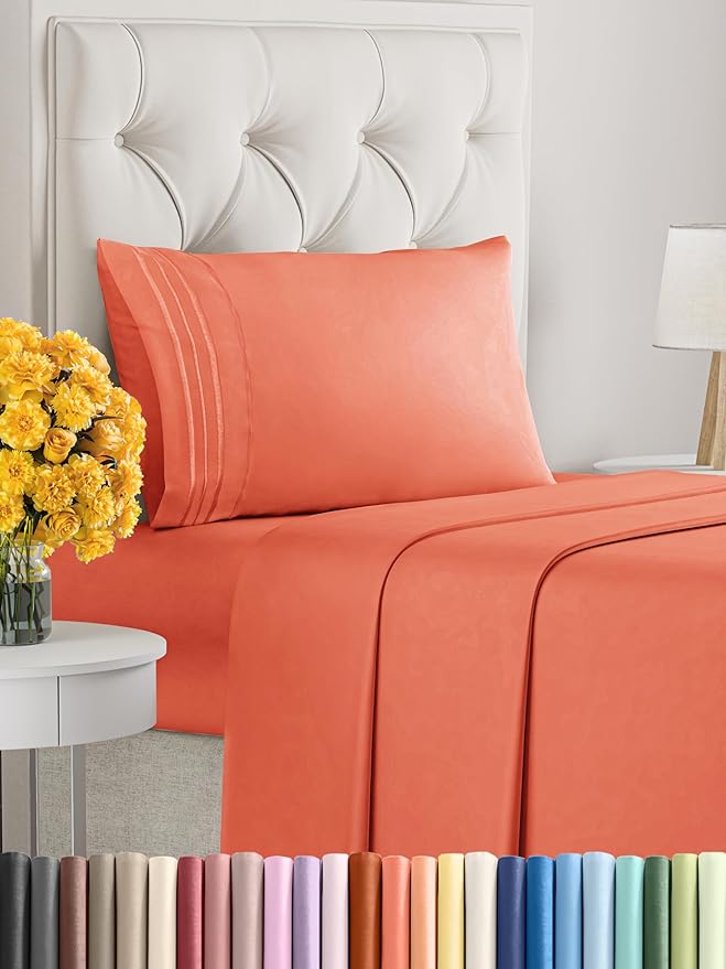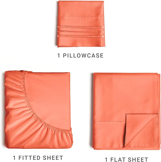 Twin XL Size 3 Piece Sheet Set - Comfy Breathable & Cooling Sheets - Hotel Luxury Bed Sheets for Women & Men - Deep Pockets, Easy-Fit, Extra Soft & Wrinkle Free Sheets - Coral Oeko-Tex Bed Sheet Set