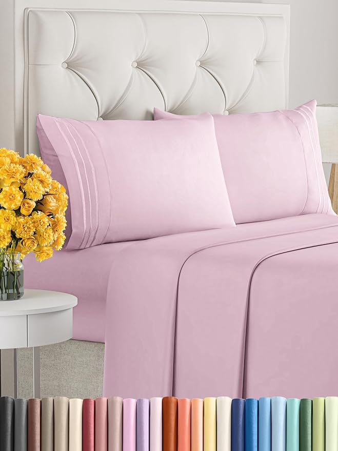 Cal King Size 4 Piece Sheet Set - Comfy Breathable & Cooling Sheets - Hotel Luxury Bed Sheets for Women & Men - Deep Pockets, Easy-Fit, Soft & Wrinkle Free Sheets - Light Pink Oeko-Tex Bed Sheet Set