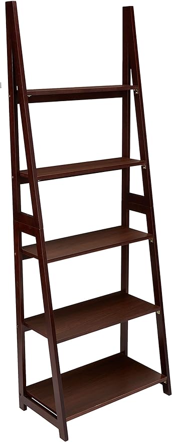 Amazon Basics Modern 5-Tier Ladder Bookshelf Organizer, Solid Rubberwood Frame, Espresso Finish, 14 D x 24.8 W x 70.1 H in