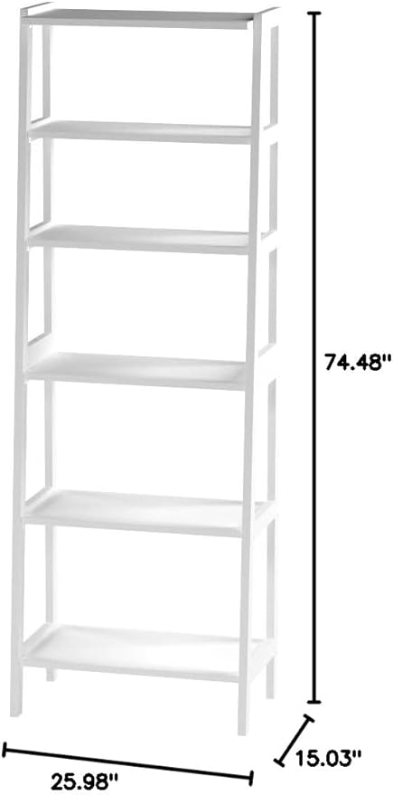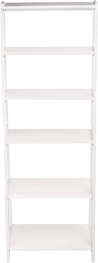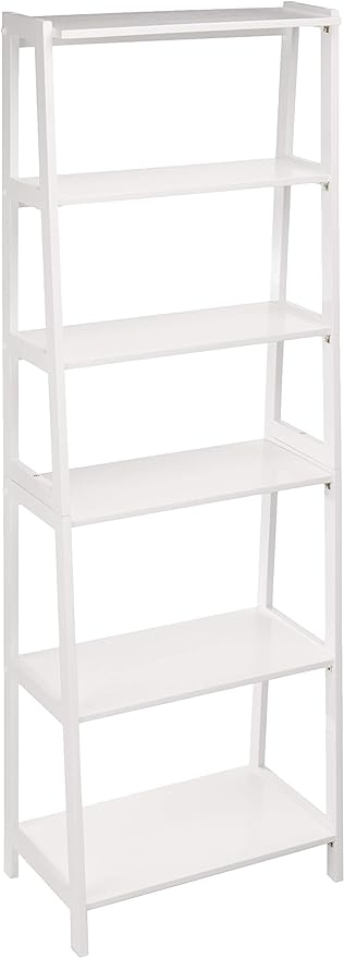 Amazon Basics Rubberwood 5 Shelf Ladder Bookcase, White, 15.03" D x 25.98" W x 74.48" H