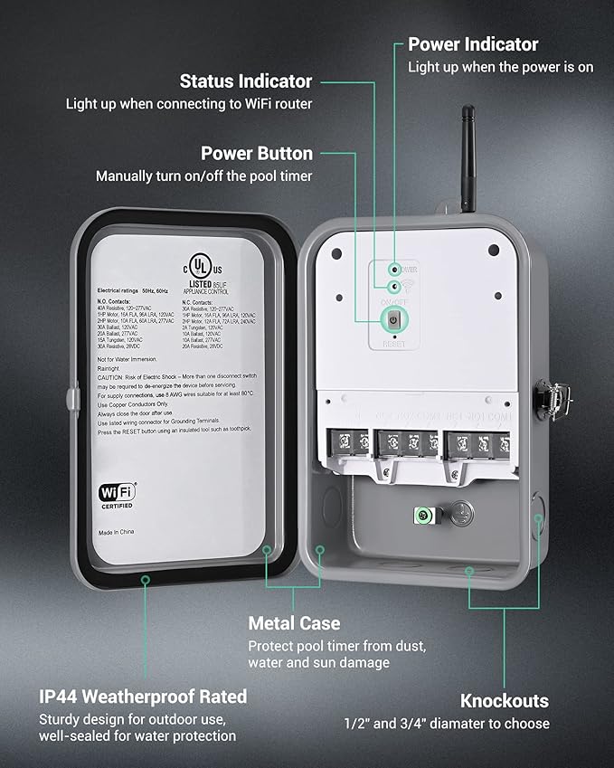 DEWENWILS Pool Pump Timer, Outdoor Wi-Fi Box, Heavy Duty 40A 120-277 VAC 2HP Wireless Controller Timer, Water Heater, Compatible with Smart Phone, Alexa, Google Assistant, UL Listed