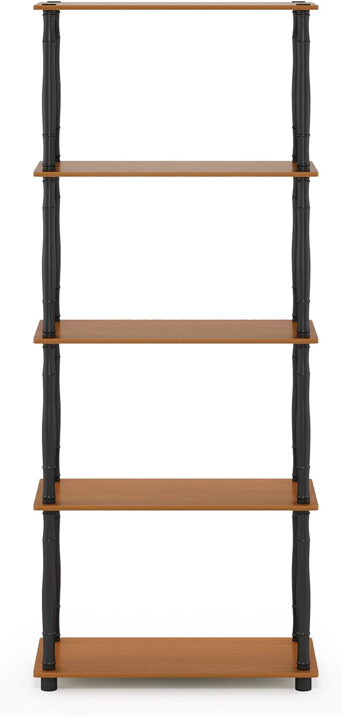 Furinno Turn-N-Tube 5-Tier Multipurpose Shelf / Display Rack / Storage Shelf / Bookshelf, Classic Tubes, Light Cherry/Black