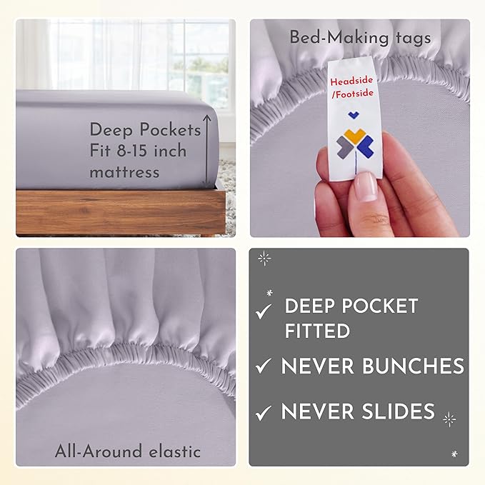 California Design Den Softest 100% Cotton Sheets, Twin Sheets Set, 3 Pc, 400 Thread Count Sateen, Dorm Rooms & Adults,Deep Pocket Sheets, Cooling Sheets,Twin Bed Sheets(Lavender Gray)