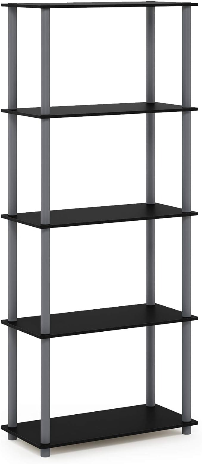 Furinno Turn-N-Tube 5-Tier Multipurpose Shelf / Display Rack / Storage Shelf / Bookshelf, Round Tubes, Black/Grey