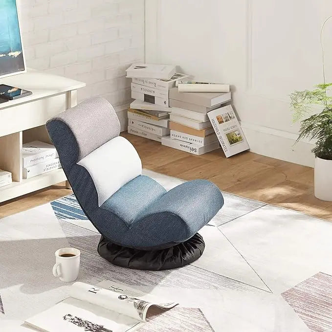 Amazon Basics Swivel Compact Adjustable Foam Floor Chair, Blue, White, Grey, 24.1"D x 16.3"W x 21.7"H