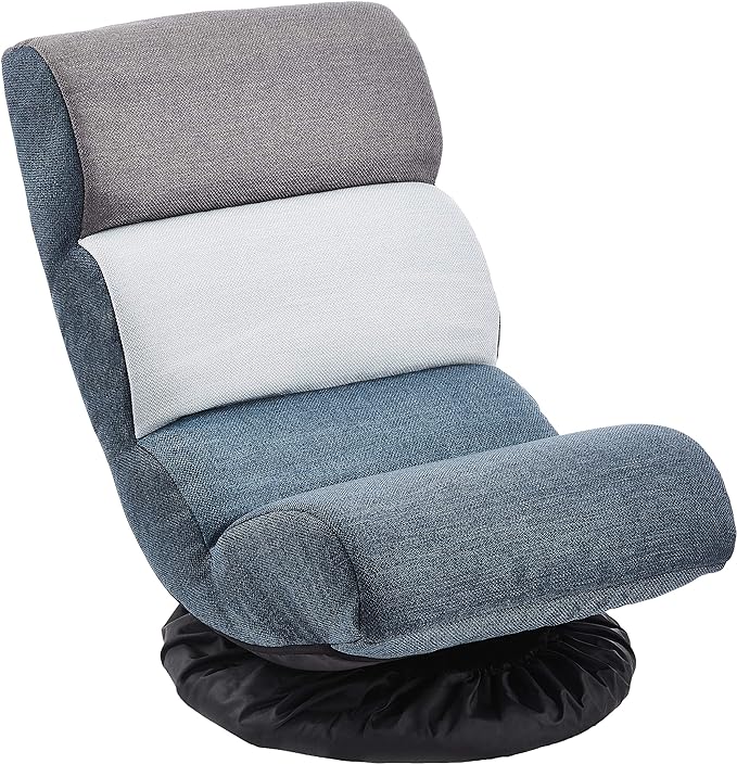 Amazon Basics Swivel Compact Adjustable Foam Floor Chair, Blue, White, Grey, 24.1"D x 16.3"W x 21.7"H