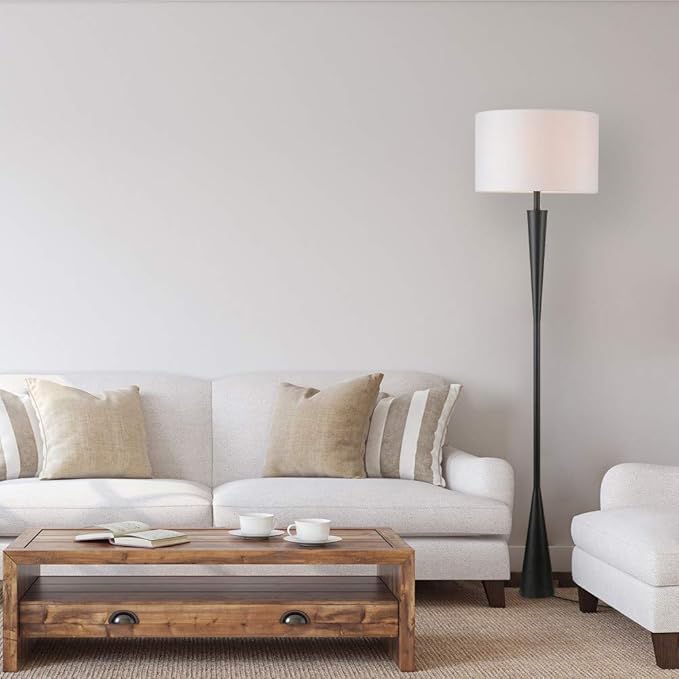Globe Electric x Novogratz 67224 Temple 70" Floor Lamp, Matte Black, White Fabric Shade, Socket Rotary Switch