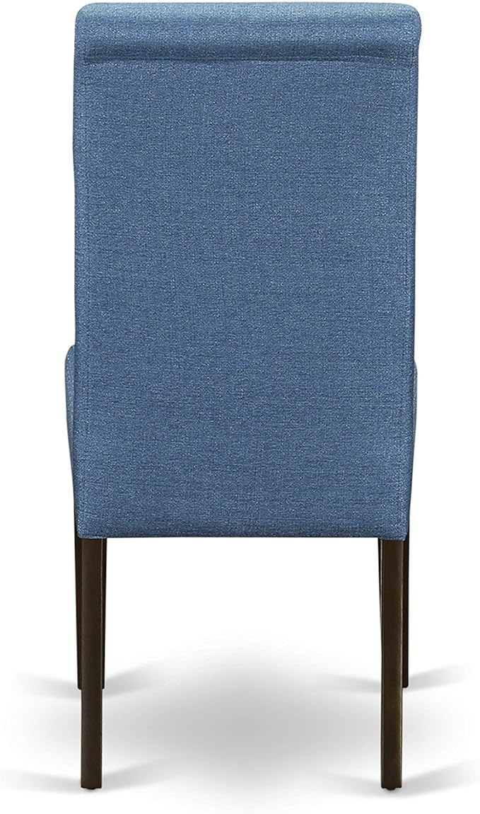 East West Furniture BOBA5-CAP-21 Boston 5 Piece Kitchen Set Includes a Round Dining Room Table and 4 Blue Color Linen Fabric Parsons Dinette Chairs, Cappuccino, 42x42 Inch