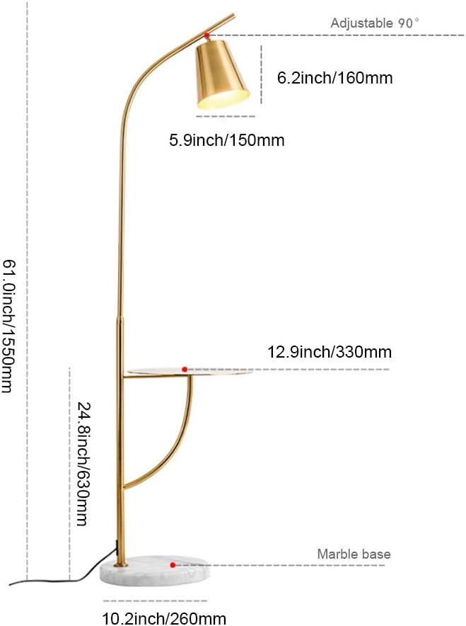 Hsyile Lighting KU300214 Creative Bedroom & Living Room Floor Lamp with a Table,Office and Reading Light - E26 Bulb - Brushed Antique Brass Finish