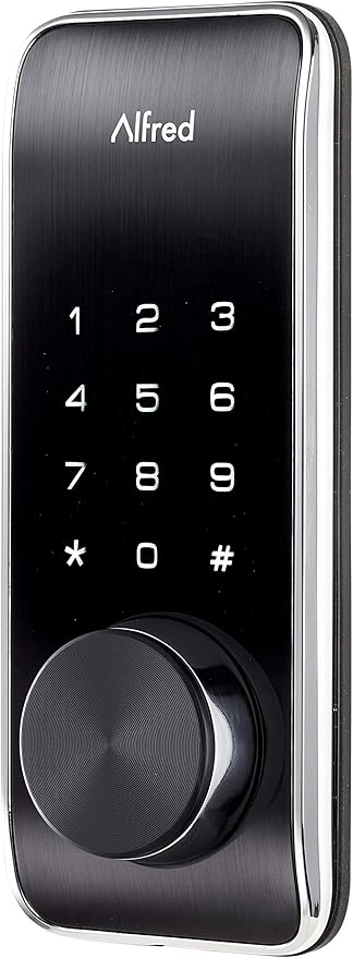 Alfred DB2-B Smart Door Lock Deadbolt Touchscreen Keypad, Pin Code + Key Entry + Bluetooth, Up to 20 Pin Codes (Chrome)