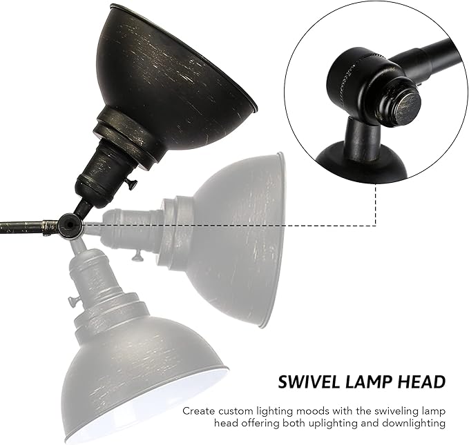 VONLUCE Floor Lamp, 65'' Tall Industrial Floor Lamp, Adjustable Height & Head Vintage Metal Standing Reading Pole Lamp, Floor Lamps for Living Room, Bedroom, Office, Farmhouse