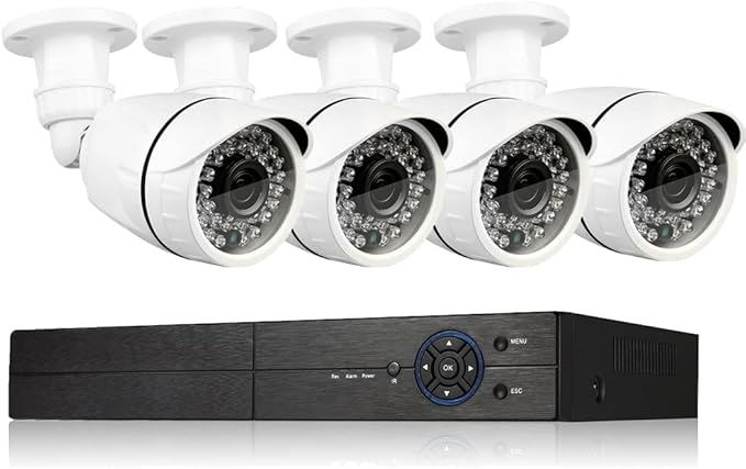Eversecu 4 Channel Security Camera System 1080P DVR and (4) 1.0MP 720P Weatherproof Cameras Support Night Vison Weatherproof, Motion Alert, Smartphone, PC Easy Remote Access (NO HDD Included)