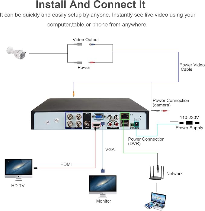 About This Includes 4ps 720P 1200TVL Indoor outdoor waterproof security surveillance cameras,1pcs 4CH 1080N NVR, Motion Alert, Smartphone, PC Easy...