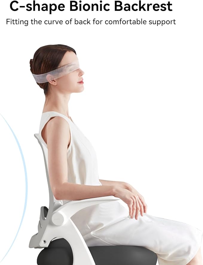 Hbada Office Chair with Flip-Up Armrests, Desk Chair with Saddle Cushion, Ergonomic Office Chair with S-Shaped Backrest, Comfy Mesh Chair for Home and Office, White